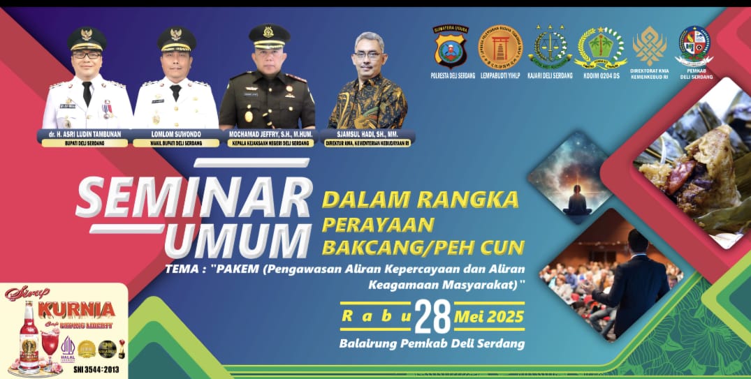 DELI SERDANG | ANGKASATV | Kepala Kejaksaan Negeri Deli Serdang Mochamad Jefrry, SH,Mhum akan mengelar Seminar Umum kepada publik , program ini merupakan tindak lanjut berdasarkan peraturan Pengawasan Aliran Kepercayaan Masyarakat (PAKEM) oleh Kejaksaan Republik Indonesia adalah Undang-Undang Nomor 16 Tahun 2004 tentang Kejaksaan RI, khususnya Pasal 30 ayat (3) huruf d yang menyatakan kejaksaan turut menyelenggarakan kegiatan pengawasan aliran kepercayaan yang dapat membahayakan masyarakat dan negara.
