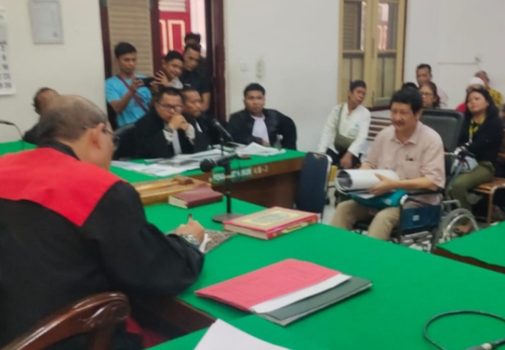 Sebelumnya bahwa Jaksa Penuntut Umum (JPU) telah mendakwa Dr. Paulus yang sedang dalam kursi pesakitan (di Kursi rodanya) didakwa dengan pasal 170 ayat (1) KUHPidana terkait pengrusakan seng milik Korban Go Mei Siang dengan beralasan tanah tersebut adalah milik Dr.Paulus.