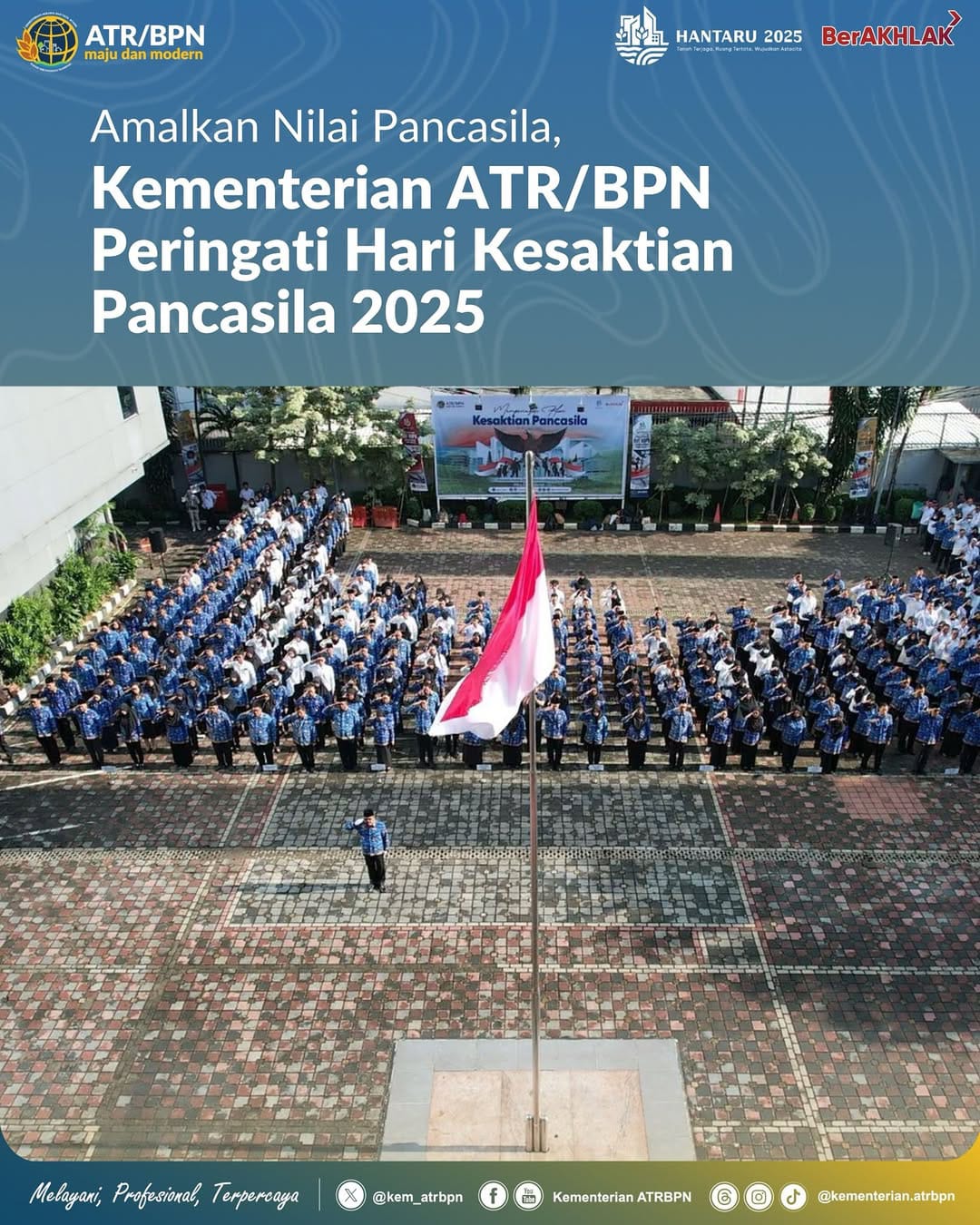 Jakarta | METRO ONENEWS.Com – Dalam semangat memperkokoh komitmen untuk mengamalkan nilai-nilai Pancasila di kehidupan berbangsa dan bernegara, Kementerian Agraria dan Tata Ruang/Badan Pertanahan Nasional (ATR/BPN) menggelar Upacara Peringatan Hari Kesaktian Pancasila Tahun 2025, di Lapangan Upacara Kementerian ATR/BPN, Jakarta, Rabu (01/10/2025). Bertindak sebagai inspektur upacara, Direktur Jenderal Pengadaan Tanah dan Pengembangan Pertanahan (Dirjen PTPP), Embun Sari.