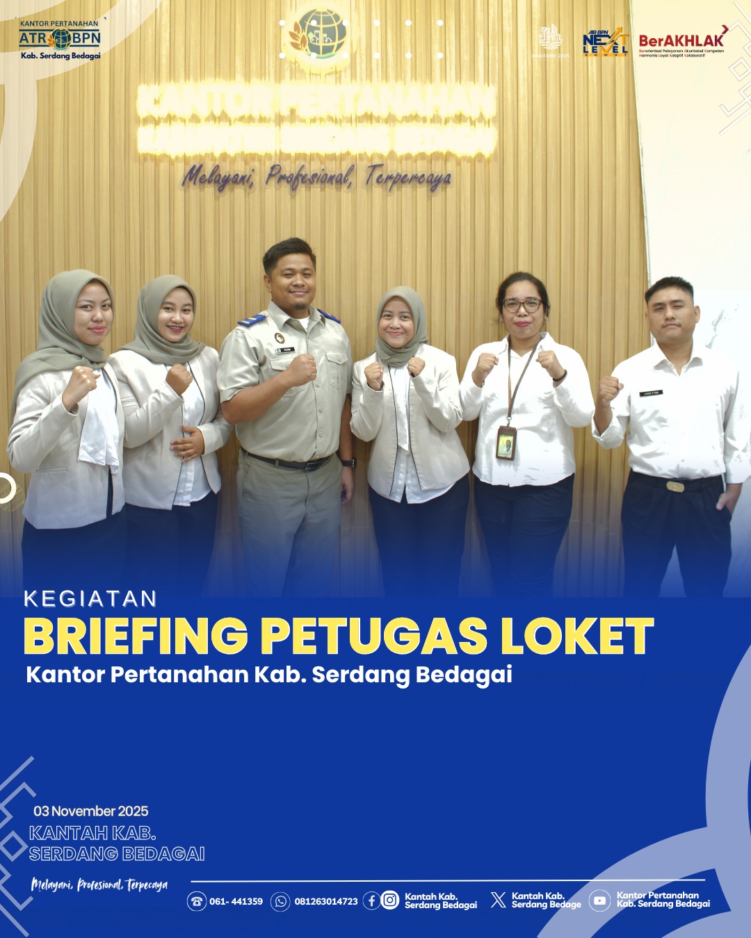 Serdang Bedagai | METRO ONE News –Manager Loket Kantor Pertanahan Kabupaten Serdang Bedagai, Rahmat Putra, S.Kom yang juga menjabat sebagai Plt. Koordinator Kelompok Substansi Perencanaan, Evaluasi dan Pelaporan memberikan briefing kepada petugas loket terkait layanan pertanahan selama sepekan, pada Senin (03/11/2025).