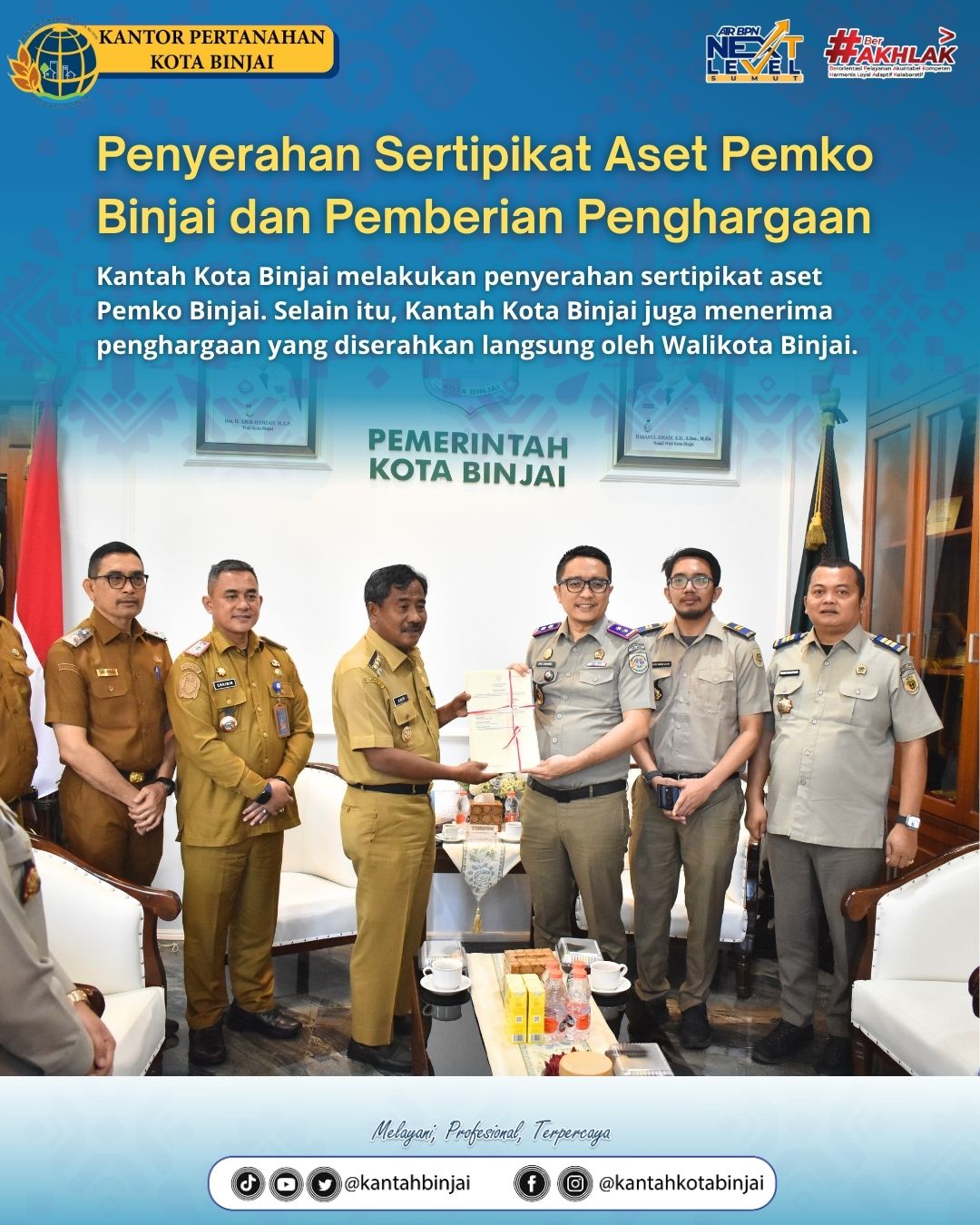 Penyerahan sertipikat tanah aset tersebut merupakan hasil sinergi dan kerja sama yang baik antara Kantor Pertanahan Kota Binjai dengan Pemerintah Kota Binjai dalam rangka pensertipikatan tanah milik pemerintah daerah. Melalui kegiatan ini, diharapkan pengelolaan aset daerah dapat semakin tertib, transparan, serta memberikan kepastian hukum yang kuat bagi Pemerintah Kota Binjai.
