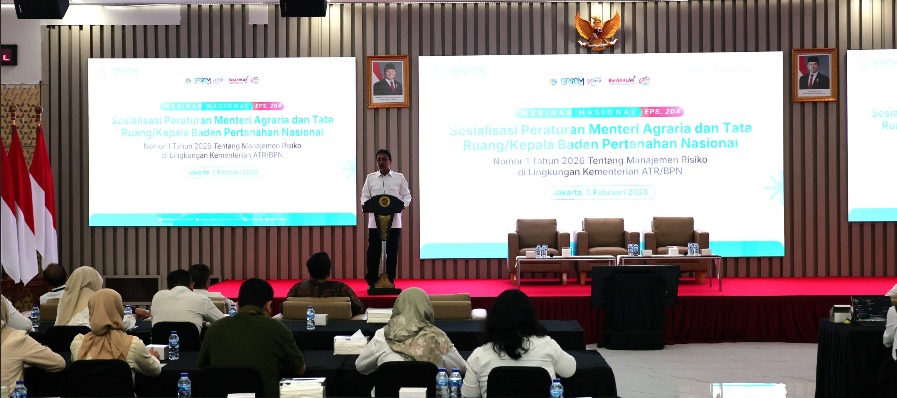 Peraturan tersebut menjadi fondasi tata kelola organisasi yang terintegrasi, sistematis, dan berkelanjutan. Untuk meningkatkan pemahaman jajaran terhadap kebijakan tersebut, Kementerian ATR/BPN menggelar Webinar Sosialisasi Permen ATR/Kepala BPN 1/2026 tentang Manajemen Risiko, secara daring dan luring di Aula Prona, Jakarta, Kamis (05/02/2026).