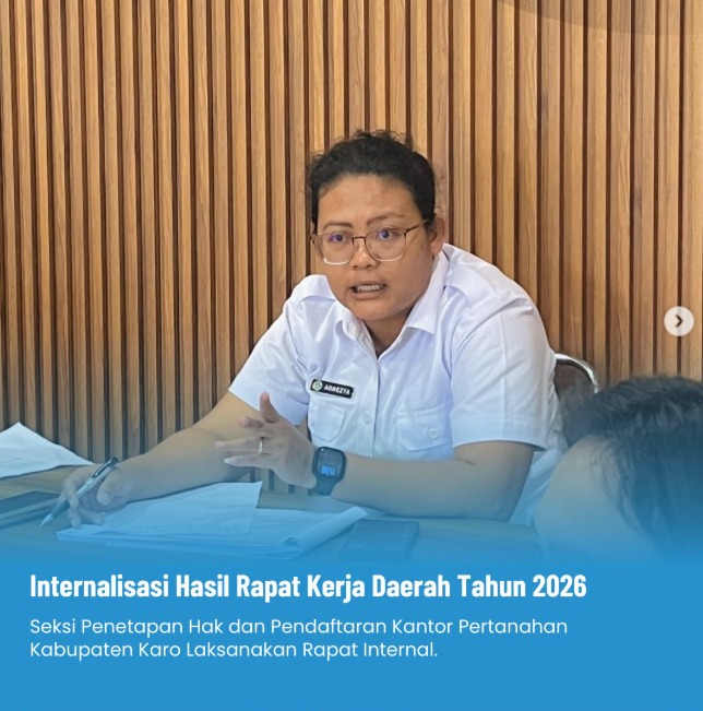 Karo | METRO ONE News – Dalam rangka menindaklanjuti hasil Rapat Kerja Daerah (Rakorda) Tahun 2026, Seksi Penetapan Hak dan Pendaftaran Kantor Pertanahan Kabupaten Karo melaksanakan rapat internal pada Selasa (03/02/26). Kegiatan ini dilaksanakan sebagai upaya menginternalisasi kebijakan, program, serta target kinerja yang telah ditetapkan untuk tahun 2026.