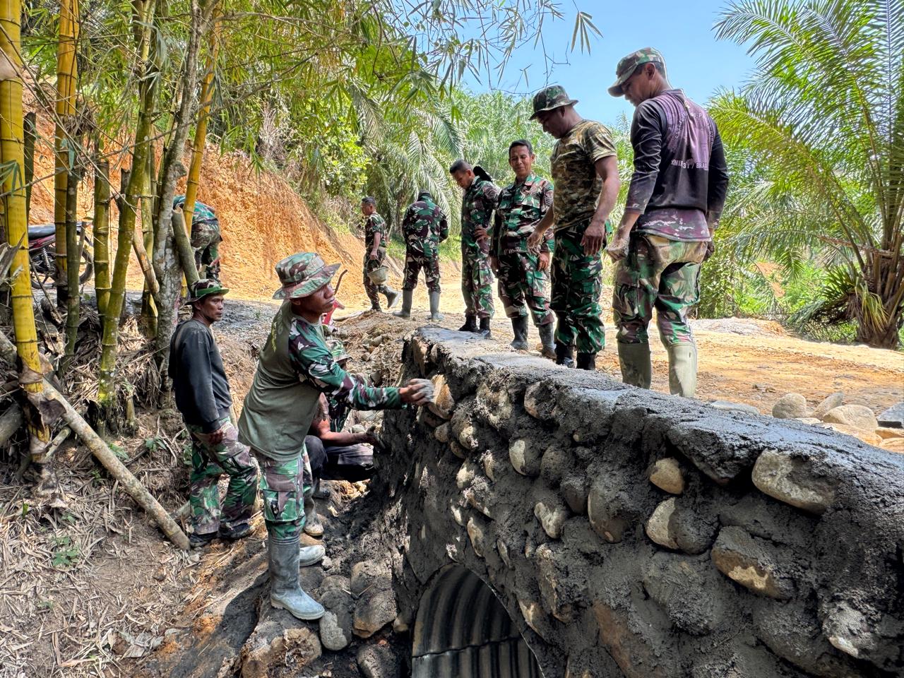 Bireuen | METRO ONE News –Pengerjaan sasaran fisik dalam program TNI Manunggal Membangun Desa (TMMD) Ke-127 Kodim 0111/Bireuen terus berlanjut. Kali ini, anggota Satgas TMMD melaksanakan pemasangan batu pada jalan aramco di titik pertama yang berlokasi di Desa Jeumpa Sikureung, Kecamatan Jeumpa, Kabupaten Bireuen. Selasa (10/03/2026).