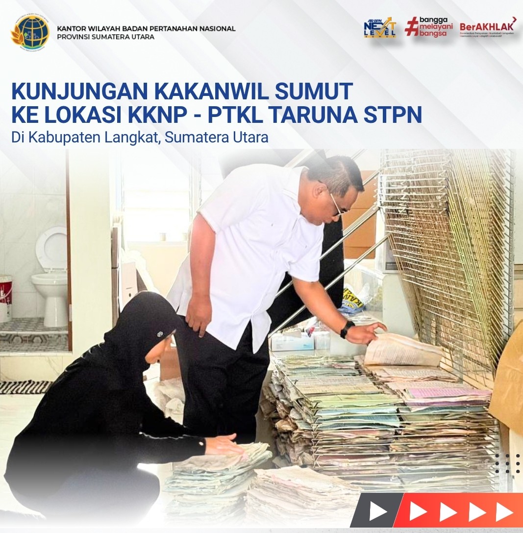 Medan | METRO ONE News – Kepala Kantor Wilayah Badan Pertanahan Nasional (BPN) Provinsi Sumatera Utara melakukan kunjungan kerja ke lokasi kegiatan Tim Kuliah Kerja Nyata Pertanahan dan Praktik Tata Laksana Pertanahan (KKNP-PTKL) Taruna Sekolah Tinggi Pertanahan Nasional (STPN) yang tengah melaksanakan tugas di Kabupaten Langkat. Kunjungan ini bertujuan untuk memberikan dukungan dan motivasi kepada para taruna dalam menjalankan kegiatan restorasi arsip pertanahan milik Kantor Pertanahan Kabupaten Aceh Tamiang.