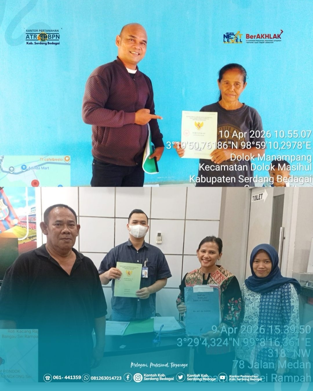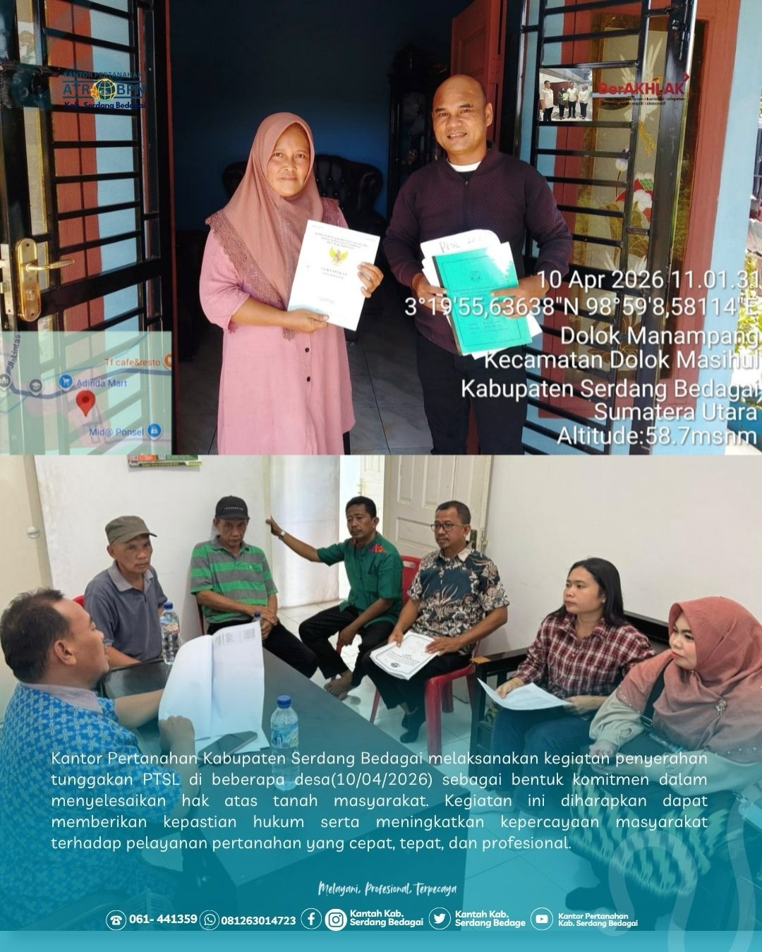 Serdang Bedagai | METRO ONE News – Kantor Pertanahan Kabupaten Serdang Bedagai melaksanakan kegiatan penyerahan tunggakan PTSL di beberapa desa(10/04/2026) sebagai bentuk komitmen dalam menyelesaikan hak atas tanah masyarakat.