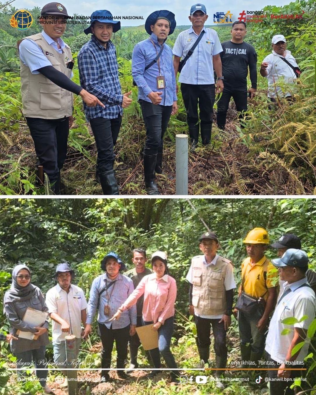 Sumatera Utara beserta Tim Panitia B langsung turun ke lapangan terkait pengecekan batas-batas lahan tanah dan permohonan pembaruan Hak Guna Usaha Kebun Air Tenang yang terletak di Kelurahan Kwala Musam, Kecamatan Batang Serang, Kabupaten Langkat. (Rel/SB)