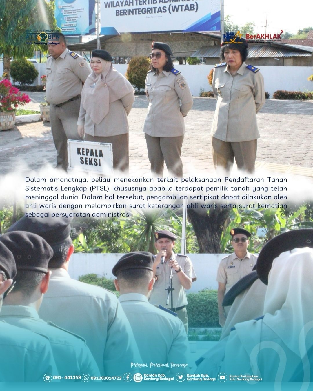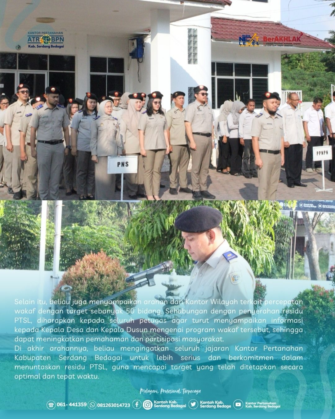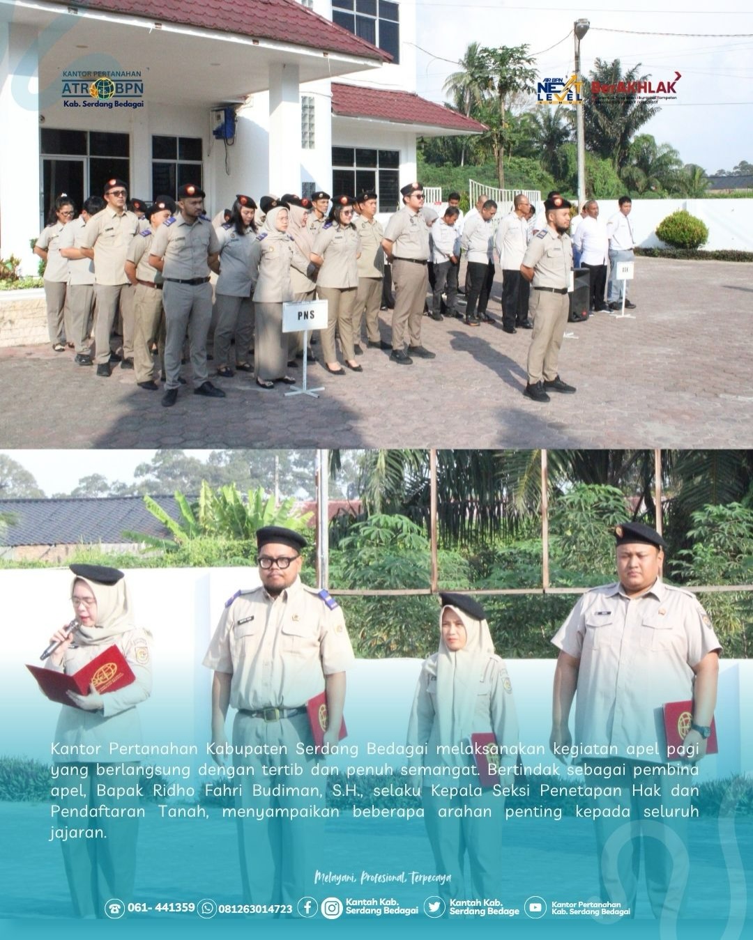 Serdang Bedagai | METRO ONE News – Kantor Pertanahan Kabupaten Serdang Bedagai melaksanakan kegiatan apel pagi yang berlangsung dengan tertib dan penuh semangat.