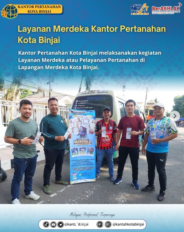 Kehadiran Layanan Merdeka ini diharapkan dapat meningkatkan kesadaran dan kepercayaan masyarakat terhadap pelayanan Kantor Pertanahan Kota Binjai. Dengan semangat pelayanan yang profesional, transparan, dan berintegritas, kegiatan ini menjadi langkah strategis dalam mewujudkan pelayanan publik yang prima dan semakin dekat dengan masyarakat. (Rel/BNJ)