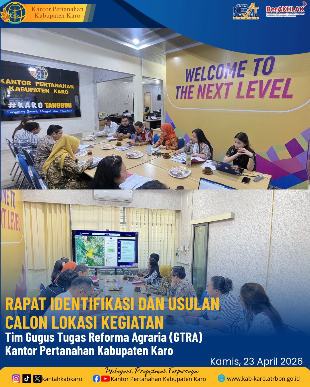 Karo | METRO ONE News – Kantor Pertanahan Kabupaten Karo melaksanakan Rapat Identifikasi dan Usulan Calon Lokasi Kegiatan Tim Gugus Tugas Reforma Agraria (GTRA) Tahun Anggaran 2026 sebagai bagian dari upaya mendukung pemerataan penguasaan dan pemanfaatan tanah bagi masyarakat.