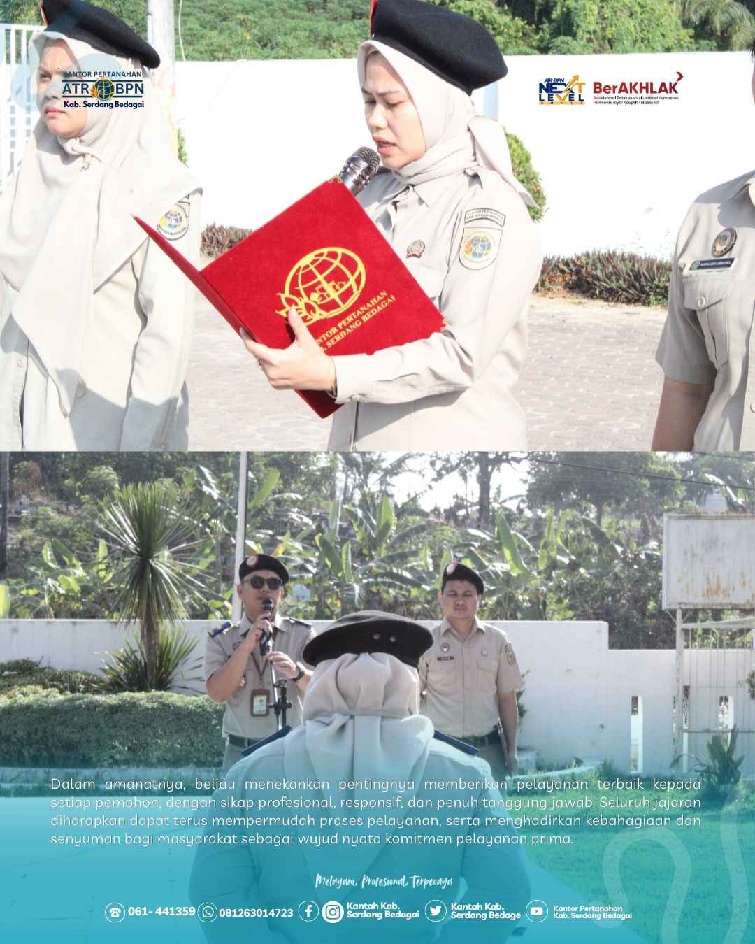 Dalam amanatnya, beliau menekankan pentingnya memberikan pelayanan terbaik kepada setiap pemohon, dengan sikap profesional, responsif, dan penuh tanggung jawab.