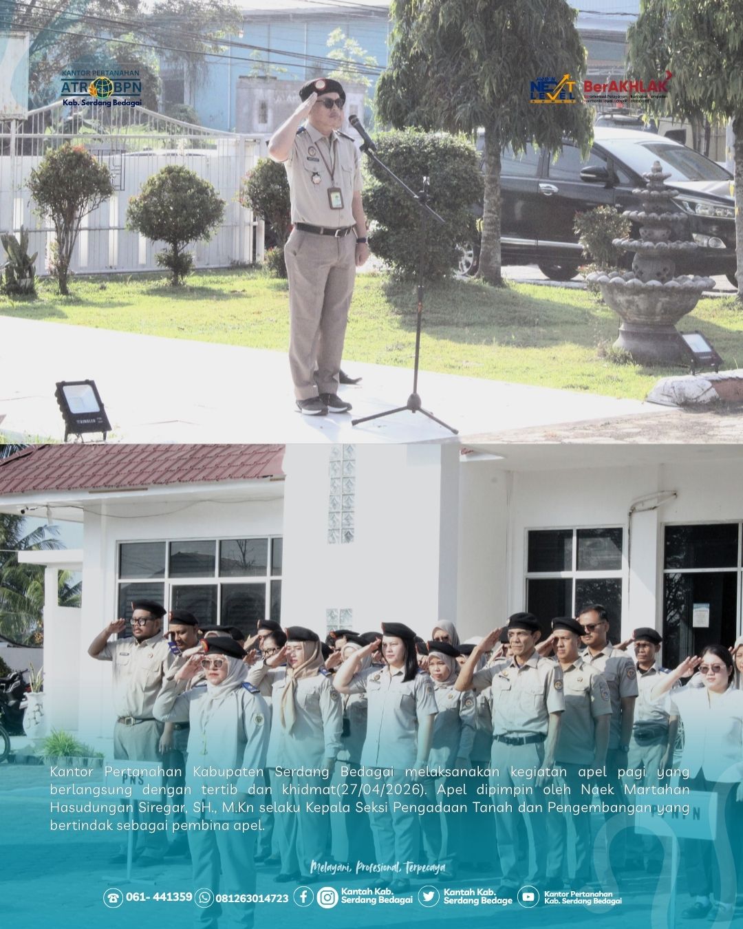 Serdang Bedagai | METRO ONE News – Kantor Pertanahan Kabupaten Serdang Bedagai melaksanakan kegiatan apel pagi yang berlangsung dengan tertib dan khidmat.