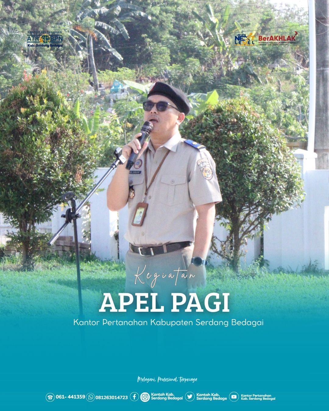 Apel dipimpin oleh Naek Martahan Hasudungan Siregar, SH., M.Kn selaku Kepala Seksi Pengadaan Tanah dan Pengembangan yang bertindak sebagai pembina apel.