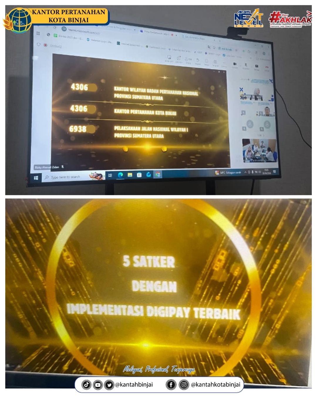 Dalam kesempatan tersebut, Kantor Pertanahan Kota Binjai berhasil meraih penghargaan sebagai Kategori 5 Satuan Kerja dengan Implementasi Digipay Terbaik Tahun 2026. Penghargaan ini merupakan apresiasi atas konsistensi dan komitmen dalam mendukung digitalisasi transaksi keuangan pemerintah melalui pemanfaatan Digipay secara optimal, sekaligus menjadi motivasi untuk terus meningkatkan kinerja dan inovasi ke depan. (Rel/BNJ)