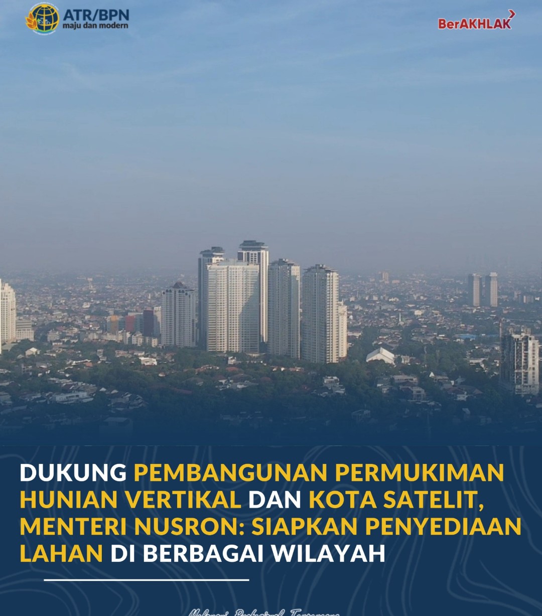 Jakarta | METRO ONE News – Kementerian Agraria dan Tata Ruang/Badan Pertanahan Nasional (ATR/BPN) memperkuat dukungan terhadap Program Strategis Nasional (PSN) melalui Pembangunan Permukiman Hunian Vertikal dan Kota Satelit. Menteri ATR/Kepala BPN, Nusron Wahid, mengatakan bahwa dukungan diberikan dengan penyediaan lahan skala besar di berbagai wilayah Indonesia.